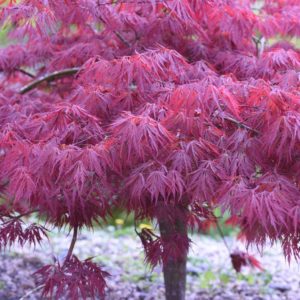 With its larger leaves more crinkled and fuller than others, the Lion’s Head Japanese Maple makes a strong statement in the garden, as a small, upright tree with great character – a lion among lambs